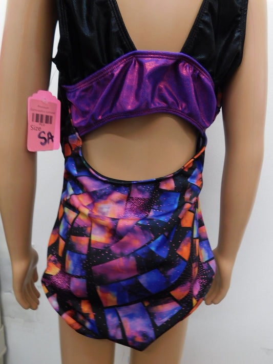 Pre-Owned Gymnastics Leotard by Alpha Factor Black Silver Medium Child