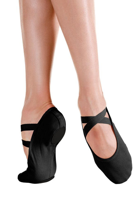 NEW Ballet Shoes SoDanca SD16L Adult Sizes Black Stretch Canvas Pull On Cross Straps Split Sole