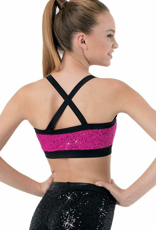 Pre-Owned Costume Balera SQ8078 Medium Child Black Sequin Crop Top Jazz Tap