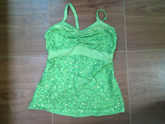 Pre-Owned Costume Top Wish Come True 11536 Large Child Lime Green Jazz Tap Sequin