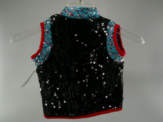 Pre-Owned Costume Vest Glamour Medium Child Turquoise Red Pageant Tap Sequin