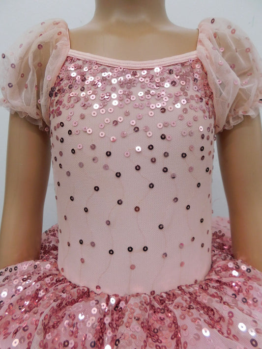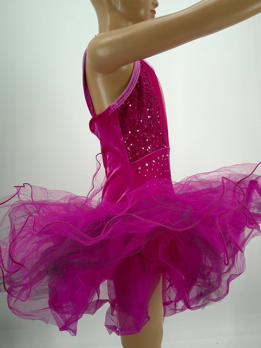 Pre-Owned Costume Curtain Call C476 Medium Child Pink Velvet Tutu Ballet Sequin