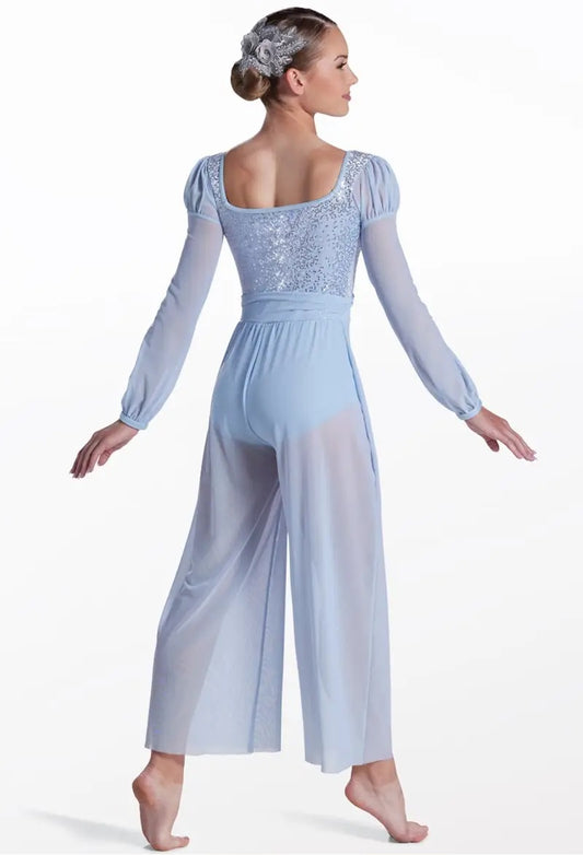 Pre-Owned Costume Weissman 15703 Medium Adult Blue Jumpsuit Lyrical Sequin