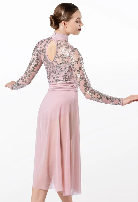 Pre-Owned Costume XL Adult Pink Weissman 13642 Lyrical Contemporary Ballet Long Sleeve Sequin