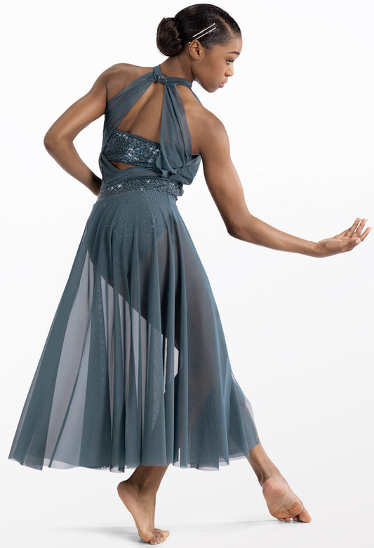 Pre-Owned Costume Weissman 8568 Medium Adult Gray Floral Lyrical Ballet Sequin