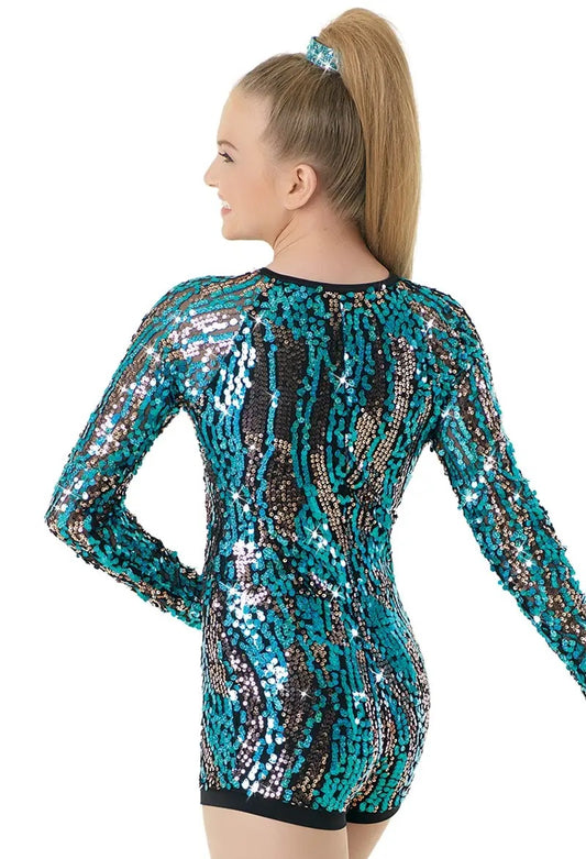 Pre-Owned Costume Weissman 8805 XL Adult Blue Sequin Feather Unitard Jazz Tap