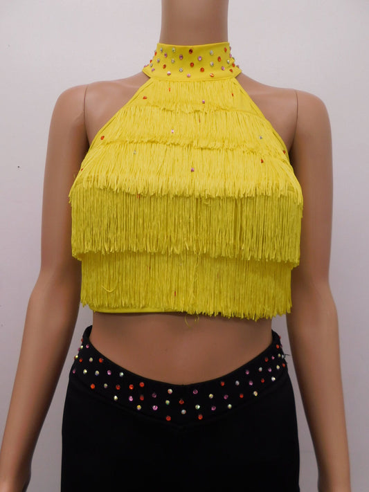 Pre-Owned Costume Balera Small Adult Yellow Fringe Jazz Tap Latin Rhinestones