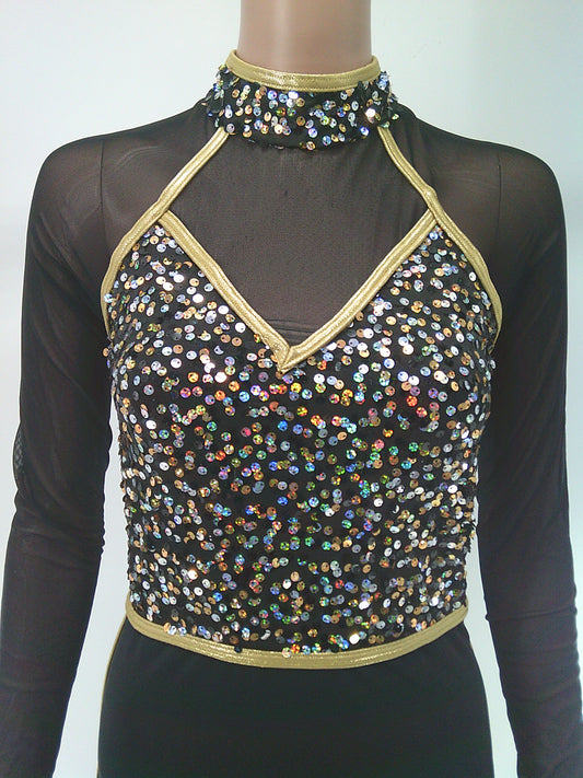 Pre-Owned Costume Balera D13860 Small Adult Black Halter Neck Jazz Sequin