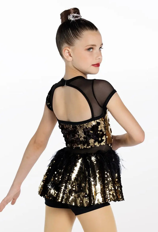 Pre-Owned Costume Jazz Small Adult Gold Weissman 13570 Sparkle Sequin Skirt Feathers Tap Clogging Musical Theater