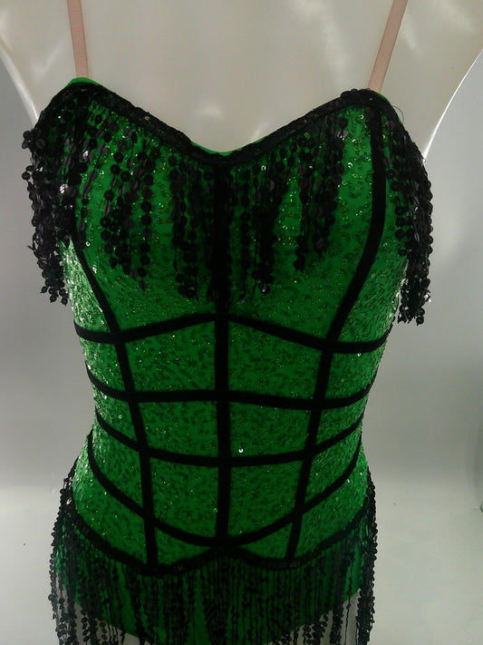 Pre-Owned Costume Small Adult Green A Wish Come True V1850 Jazz Tap Musical Theater Clogging Fringe Sequin
