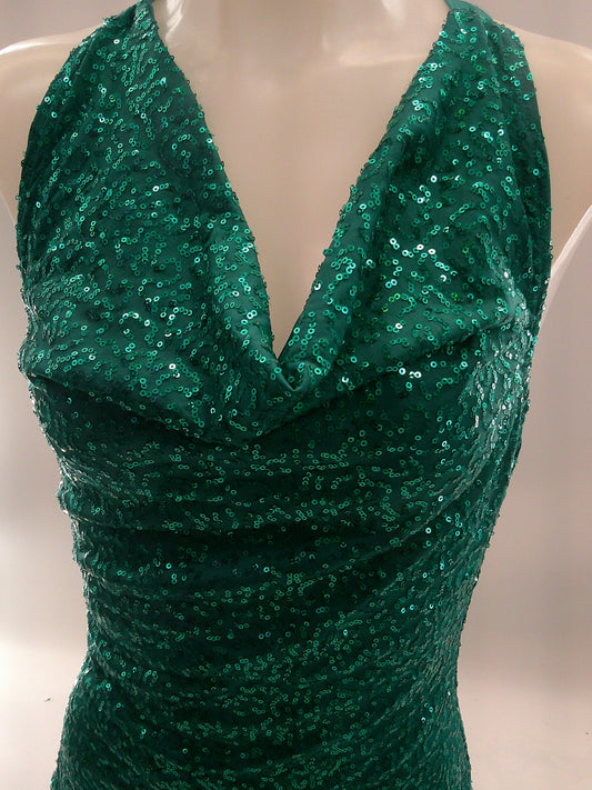 Pre-Owned Costume Small Adult Teal Sparkle Jazz Tap Musical Theater Sequin Dress Asymmetrical