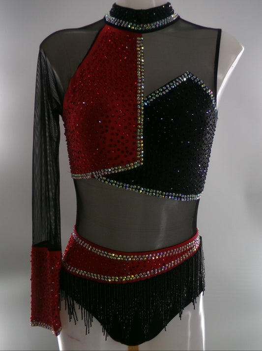 Pre-Owned Costume Small Adult Red Glamour Jazz Tap Musical Theater Beads Rhinestones Fringe