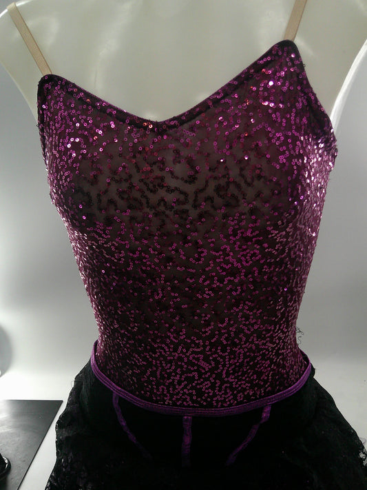 Pre-Owned Costume Small Adult Purple Curtain Call J4702 Jazz Tap Clogging Ballet Sequin Lace Dress