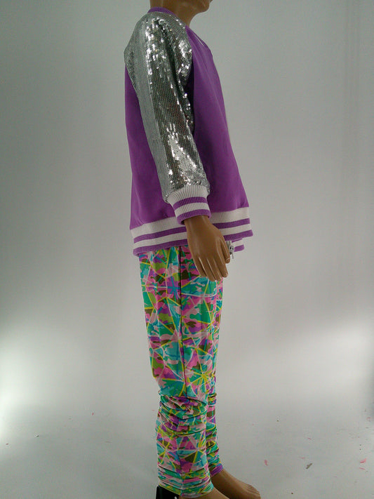Pre-Owned Costume Weissman 9311 Medium Child Purple Unitard Hip Hop Sequin