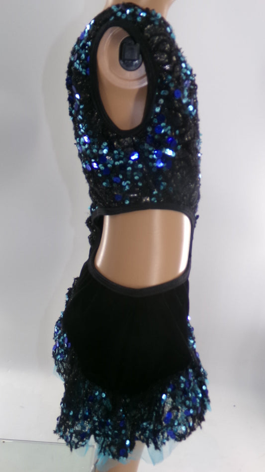 Pre-Owned Costume Large Child Blue Pumpers Jazz Latin Contemporary Skirt Cutouts