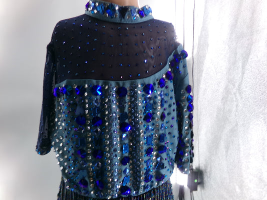 Pre-Owned Costume Large Child Blue Glamour Jazz Tap Clogging Latin Fringe Rhinestones 2 pc