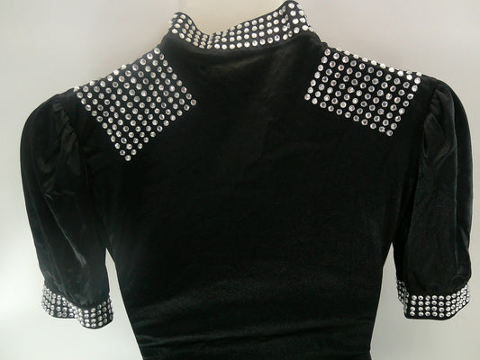 Pre-Owned Costume Large Child Black Weissman 5507 Jazz Tap Contemporary Romper Rhinestones