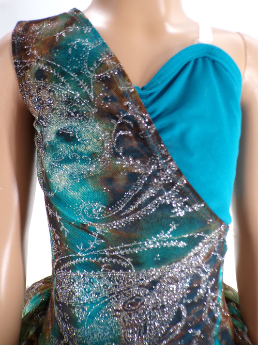 Pre-Owned Costume Weissman Intermediate Child Turquoise Fringe Jazz Tap Rhinestones 1
