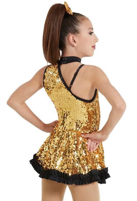 Pre-Owned Costume Weissman 12195 Medium Child Gold Dress Jazz Sequin