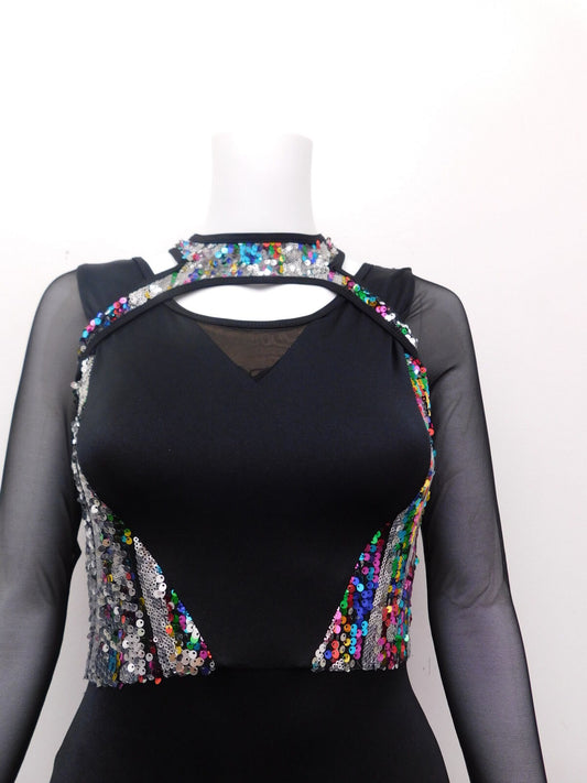 Pre-Owned Costume Curtain Call E2113 Medium Child Black White Sequin 2in1