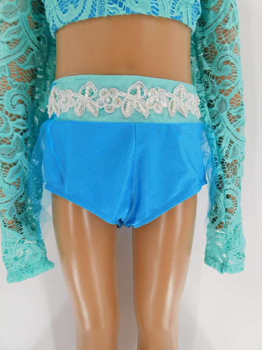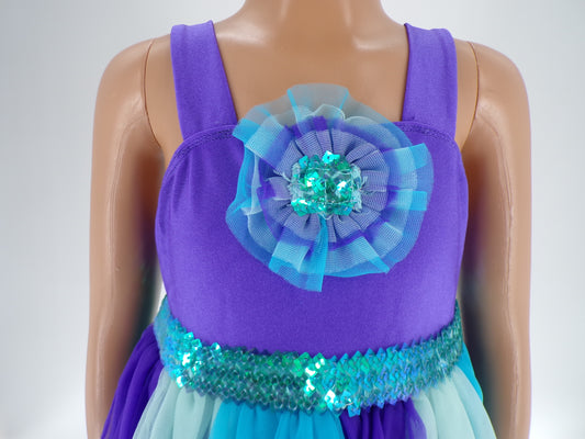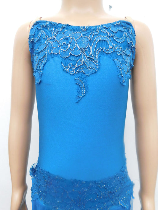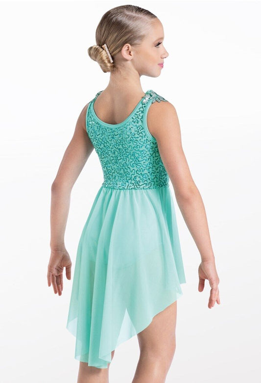 Pre-Owned Costume AWCT S193 Medium Child Teal Dress Lyrical Glitter Thread