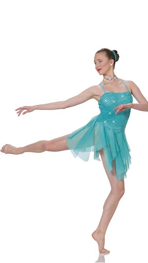 DRESS: Sequined polyester with mesh overlay and attached mesh skirt with attached leotard.