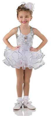LEOTARD WITH ATTACHED TUTU: Sequin lace over white spandex, silver foil, and white organza