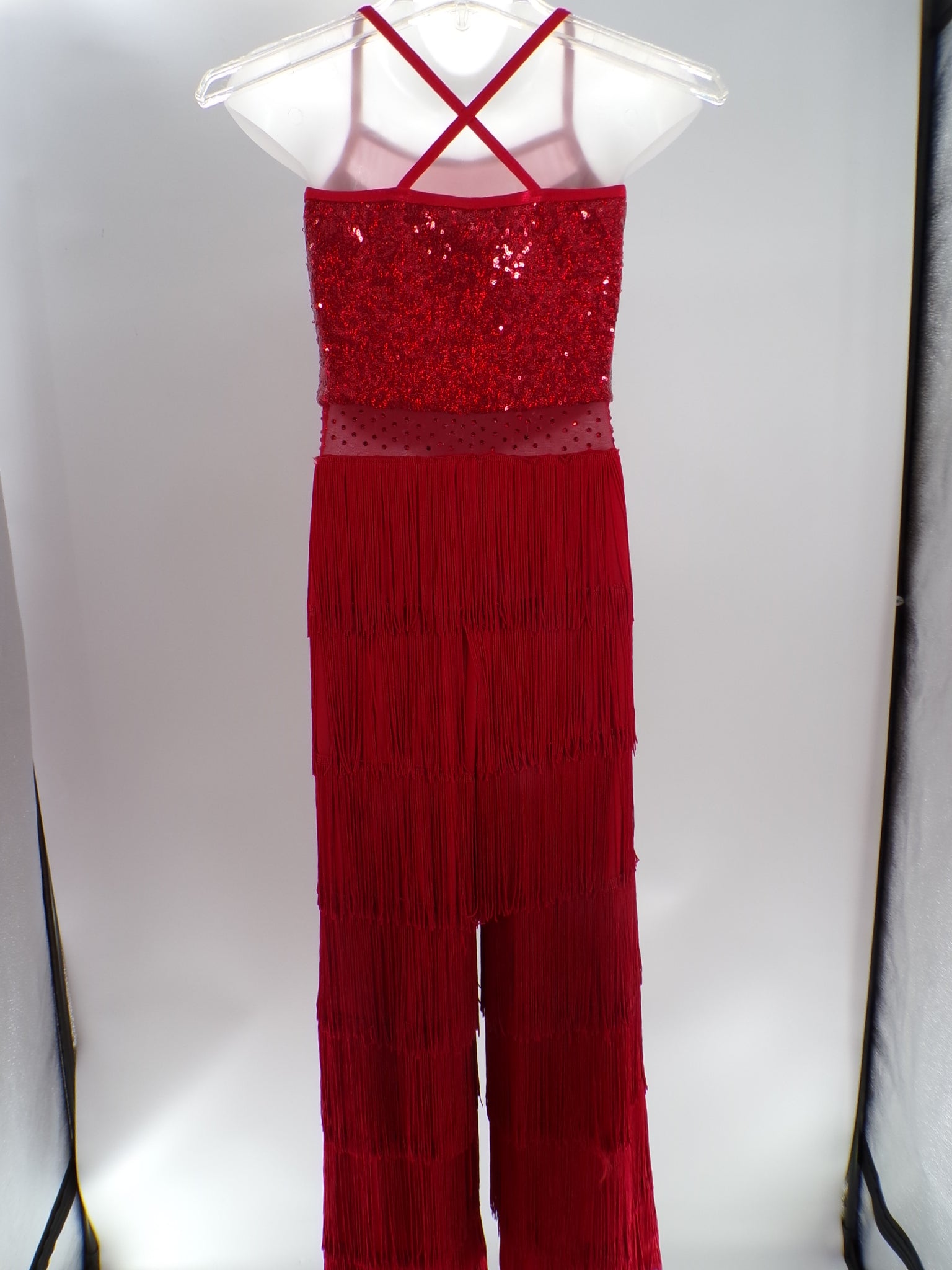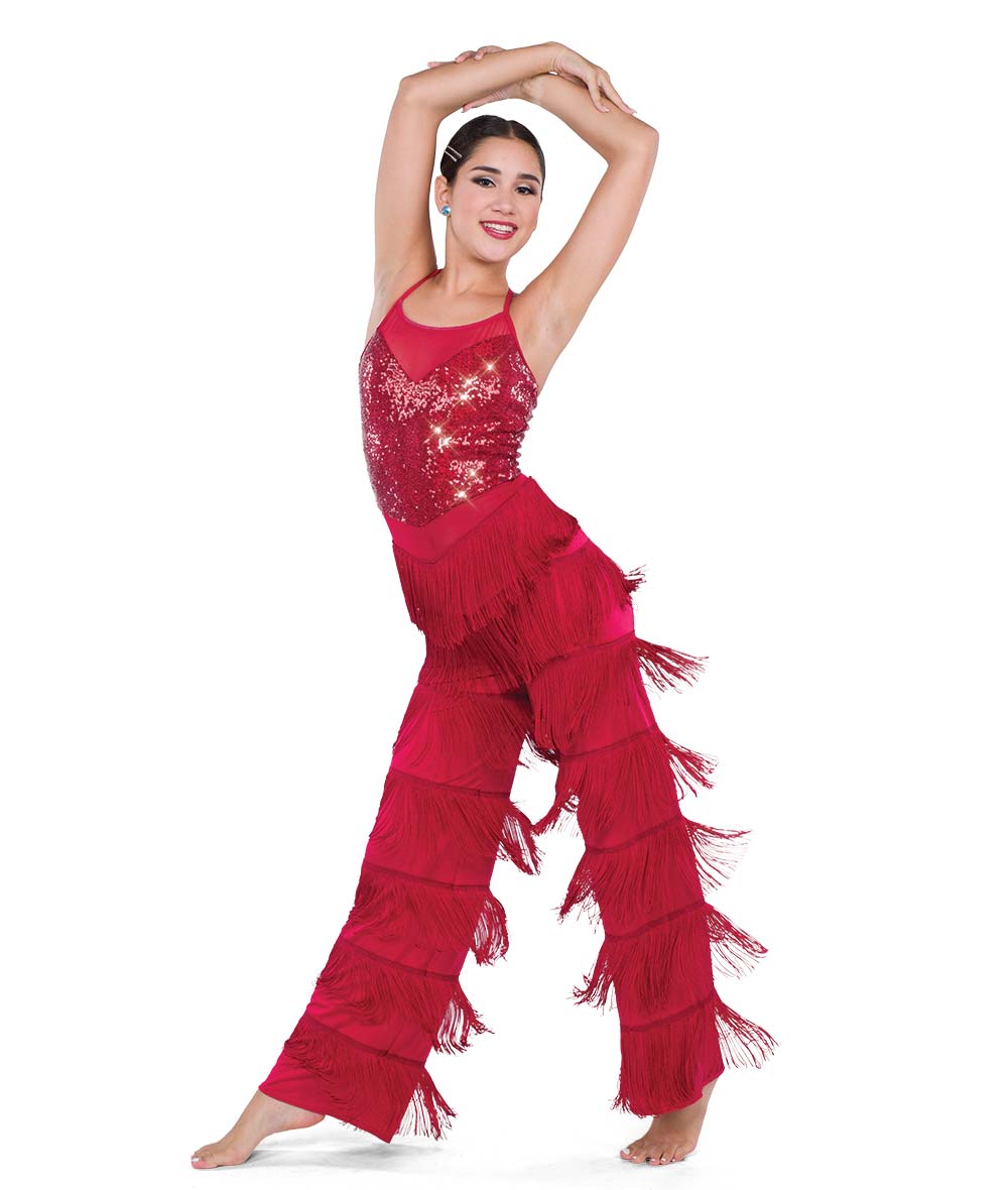 Pre-Owned Costume AWCT 24022 Med-Lar Child Red Fringe Jazz Tap Sequins/Rhinestones