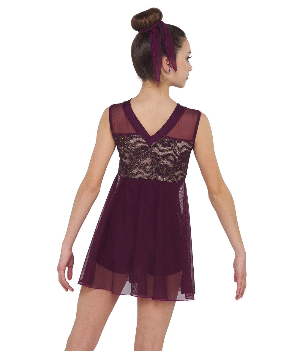 Foil lace and mesh dress with sequin dot spandex bodice lining. Attached spandex hot pants. Made in the USA.