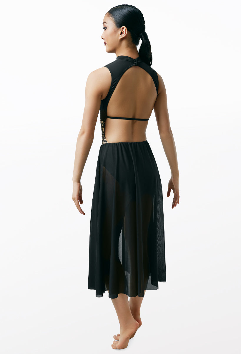 Matte nylon dress with asymmetrical laser cut insets over nude matte nylon