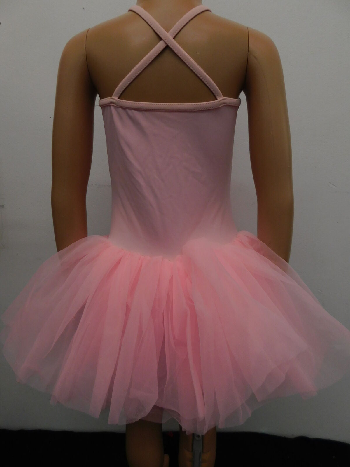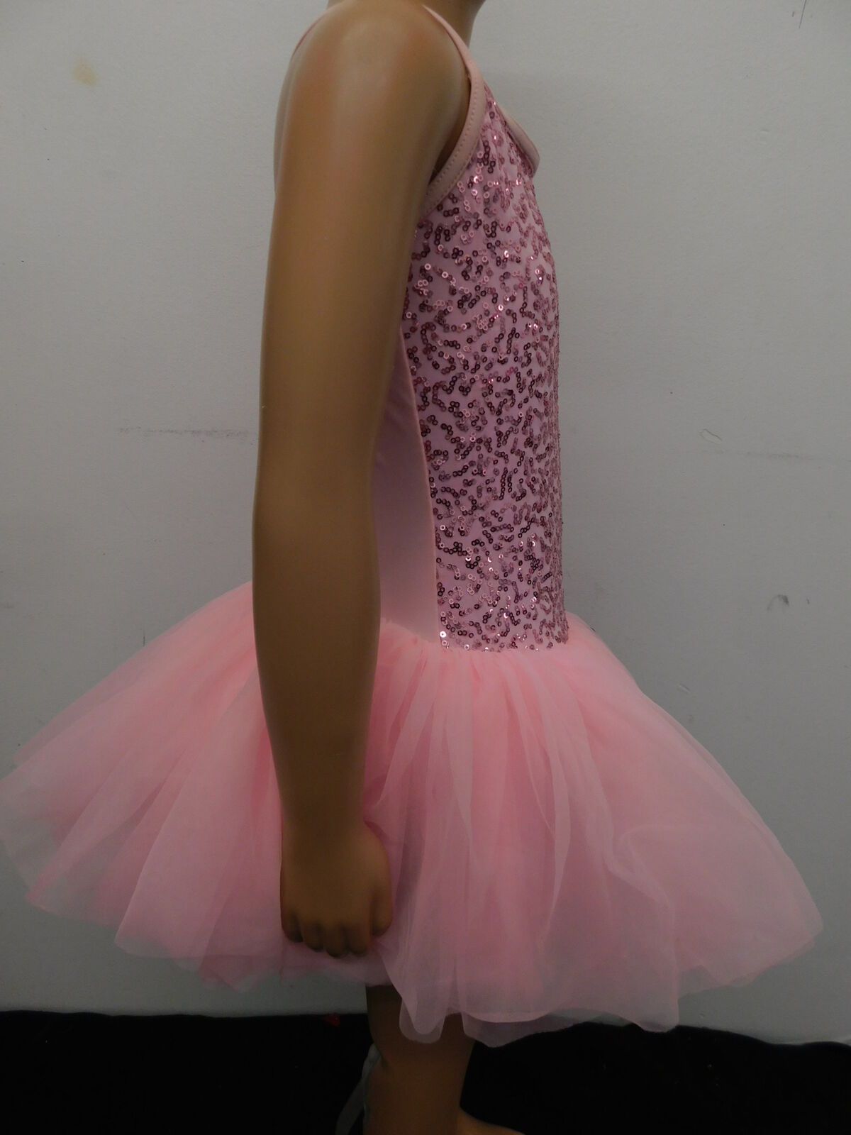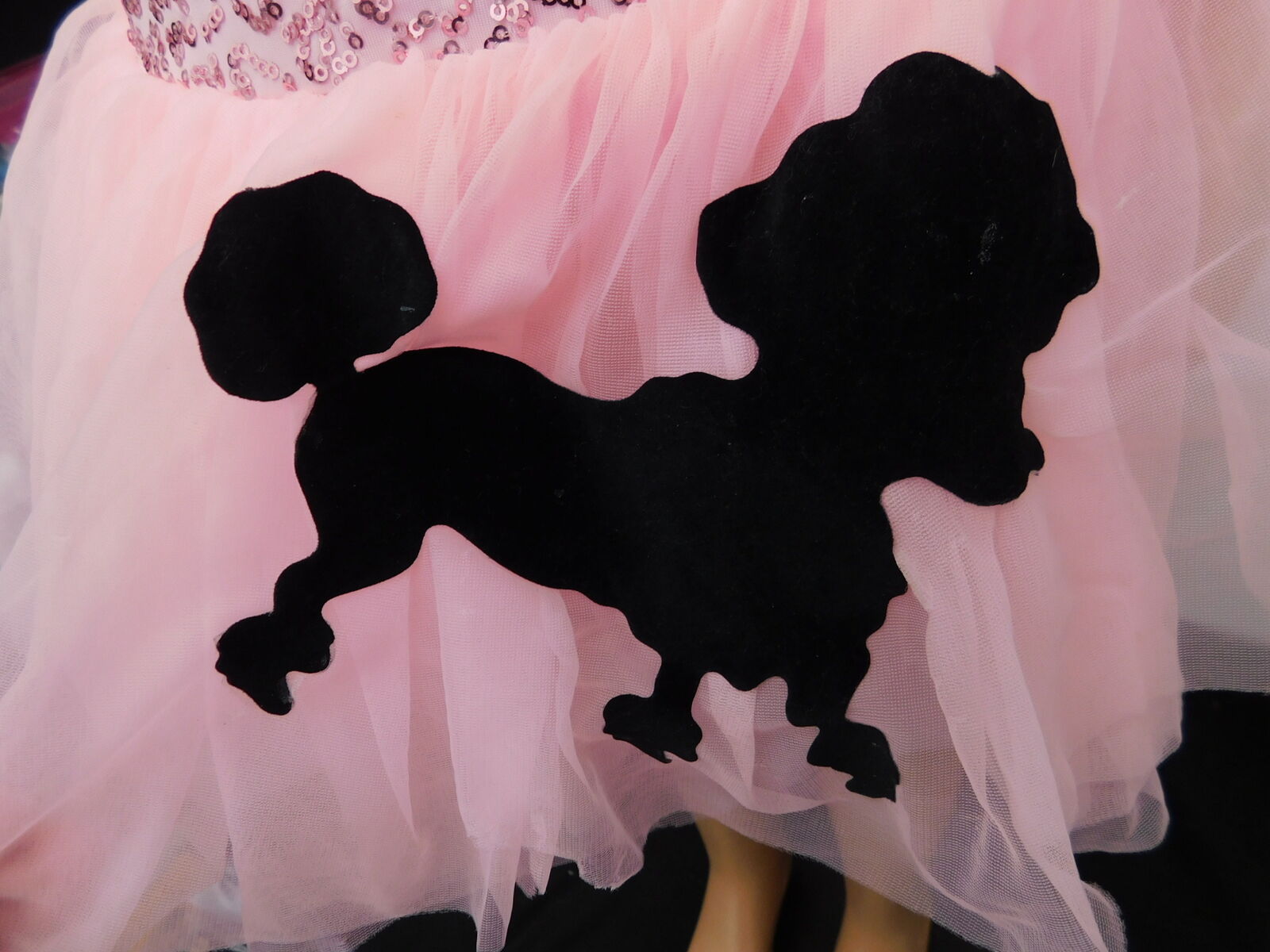 Description: Pink leotard with pink sequins on the bodice. Attached pink tulle skirting, with poodle applique on skirt.
