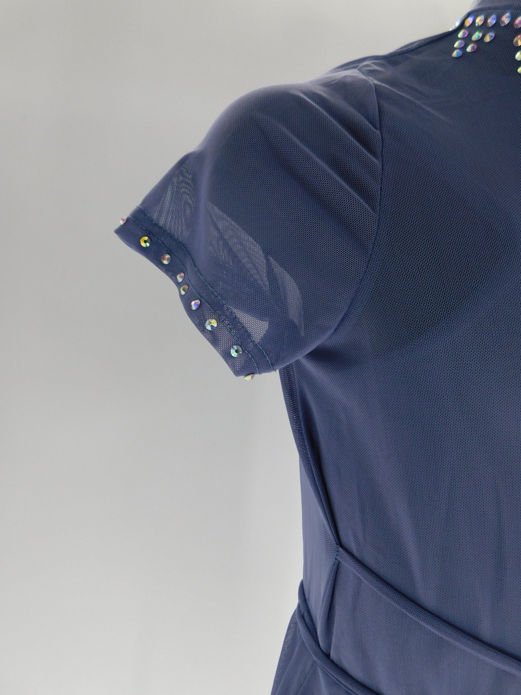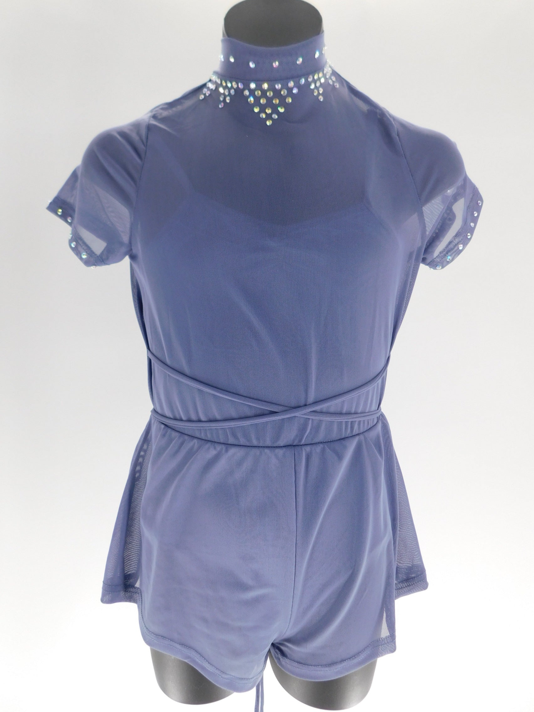 Short sleeve power mesh romper with deep scoop back
