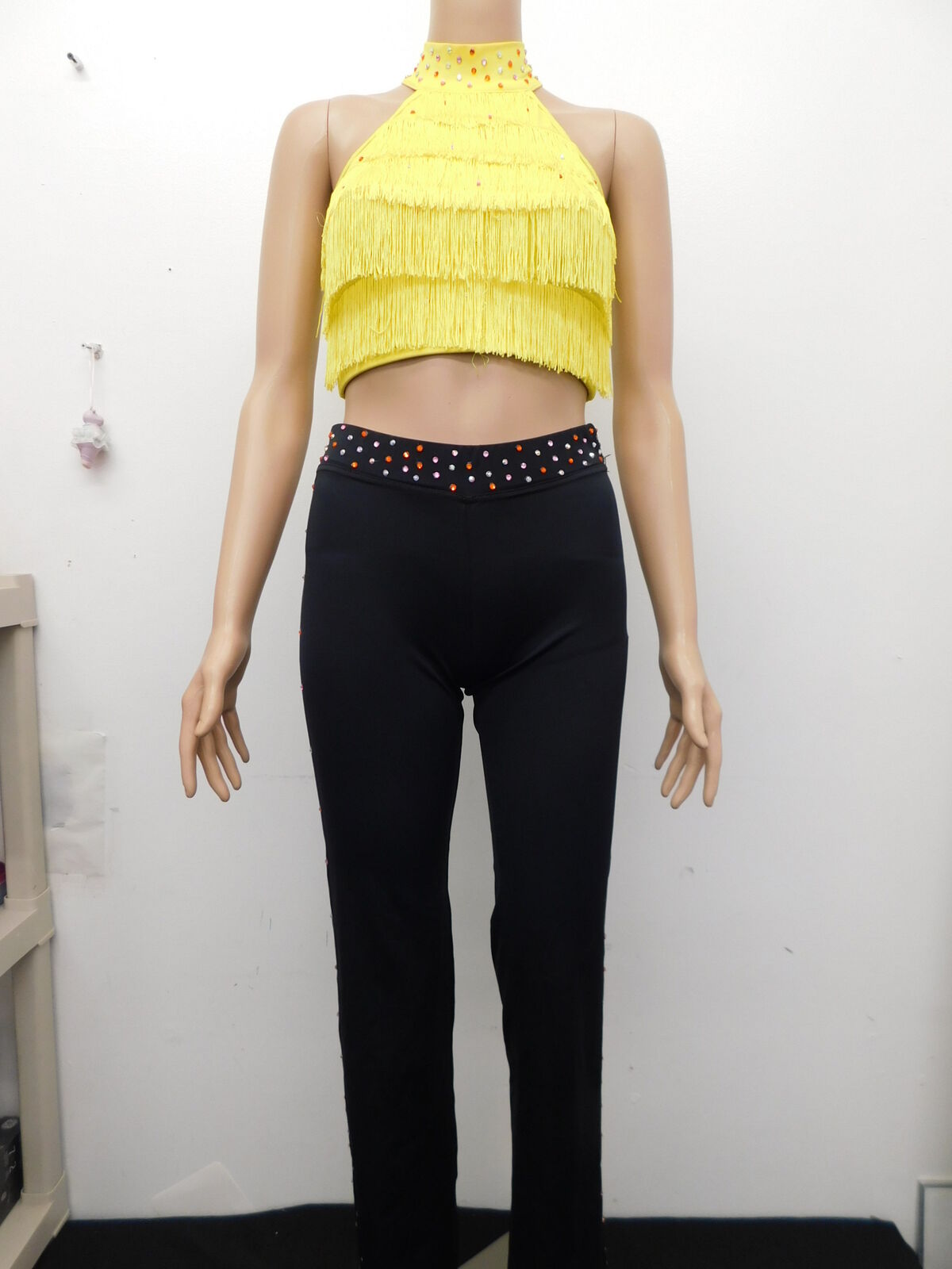 Pre-Owned Costume Balera Small Adult Yellow Fringe Jazz Tap Latin Rhinestones