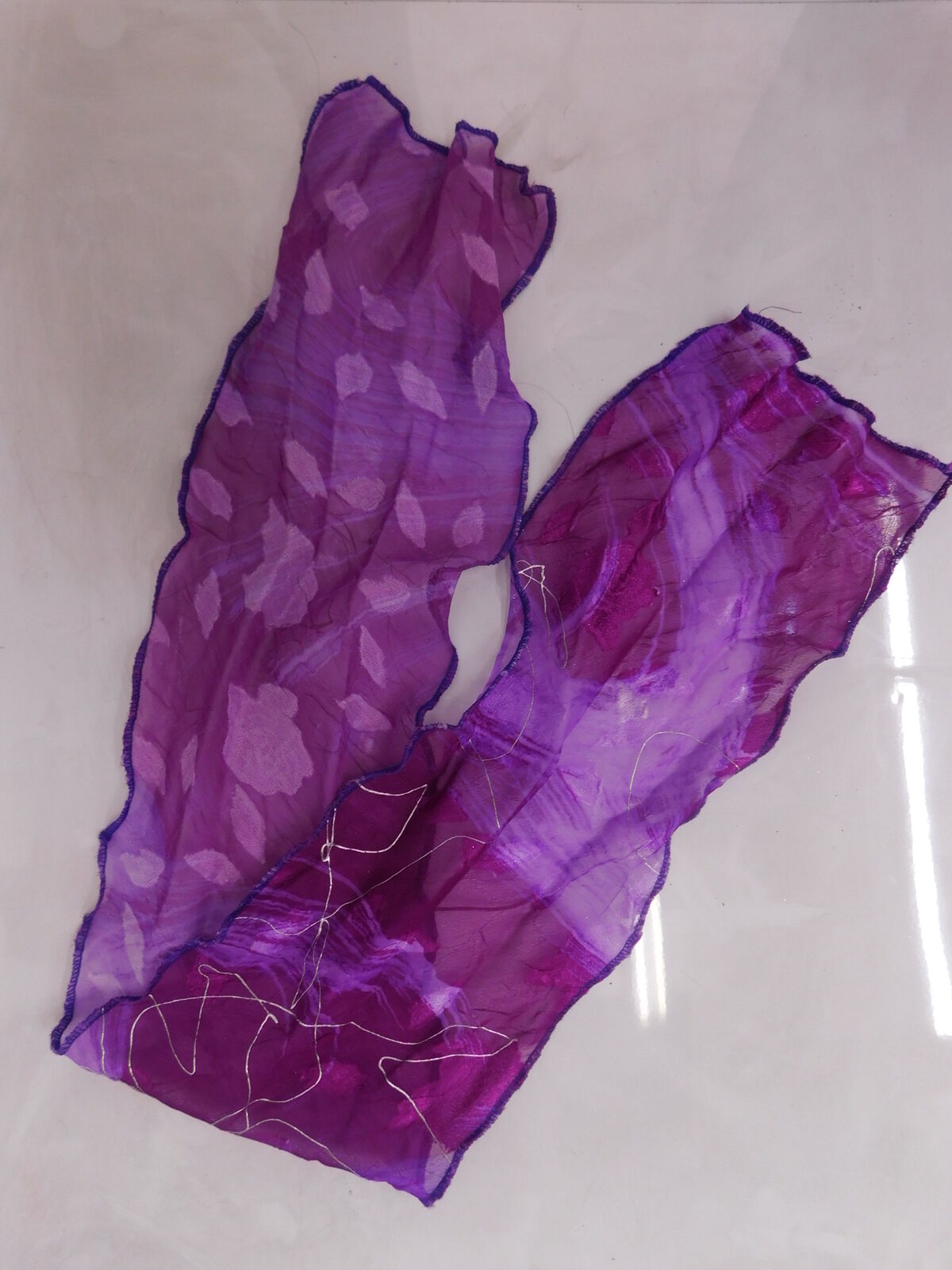 Lycra biketard with adjustable straps and matching overlay. Overlay ties at each shoulder and is a marbled print with silver swirls. Matching headpiece included.