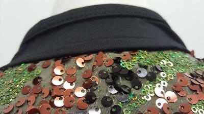 Description: A mix of green, copper and black sequin create a "snake like" pattern on this long sleeve jacket. Black capri pants are included. **Does not include cami top in picture**