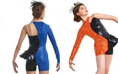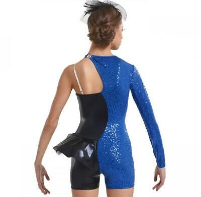 Contrasts 999A ' B2-J5187 Mystique poly/spandex, sequin poly/spandex and nylon/spandex asymmetrical short leotard with attached peplum.