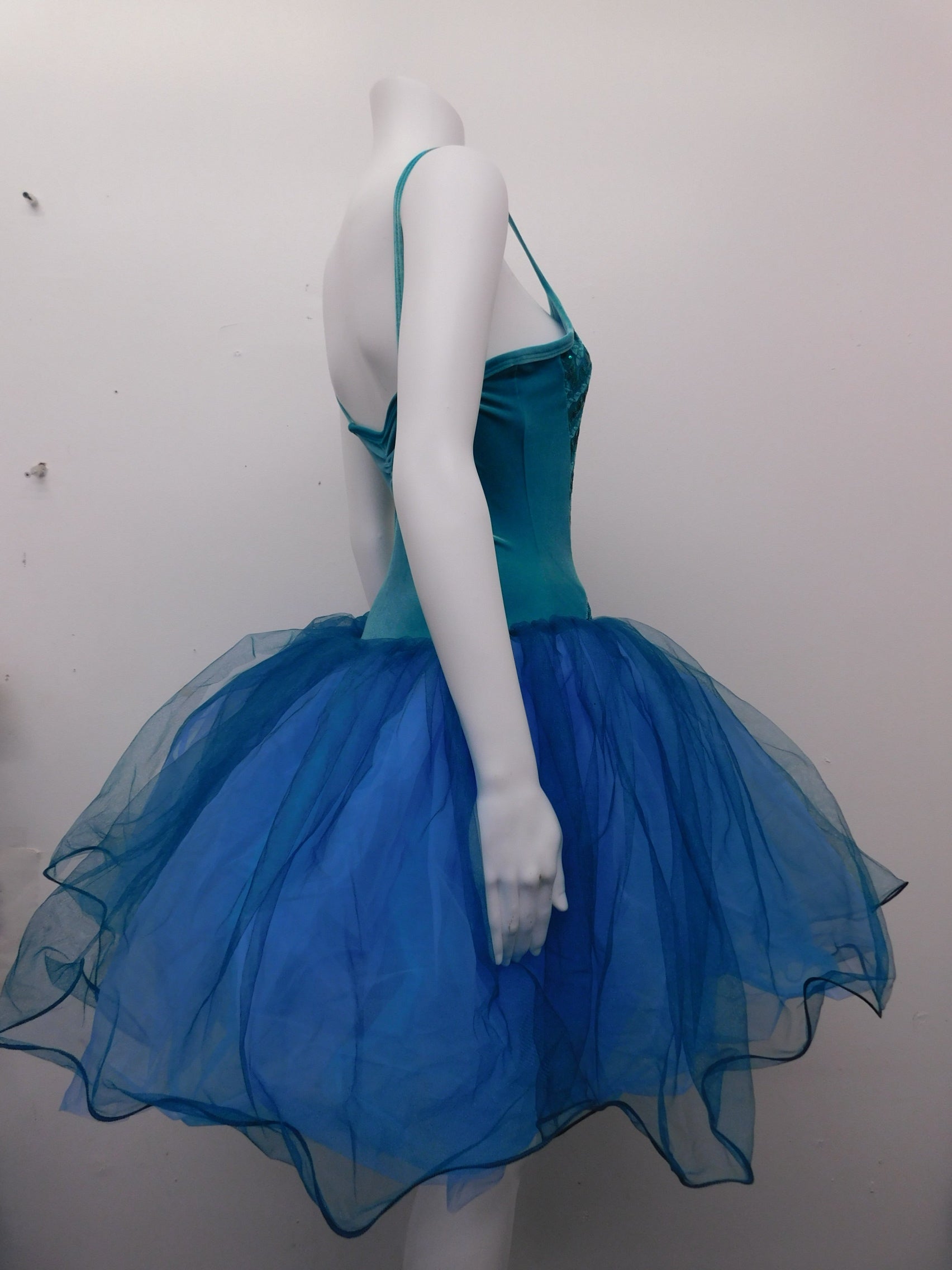 Velvet base leotard with mermaid scale Sequin overlay - Multi-Layer tulle skirt with fishing line hem