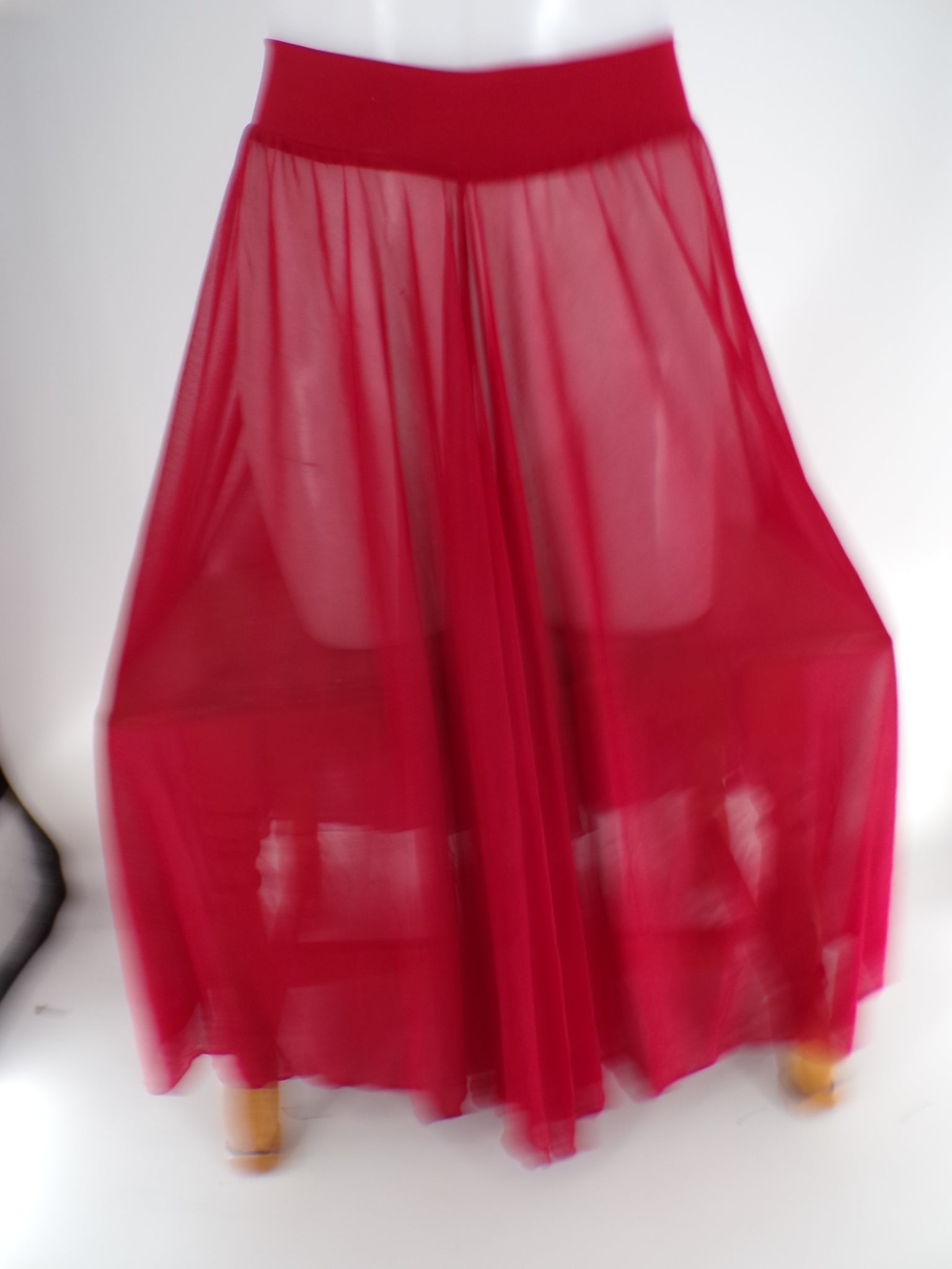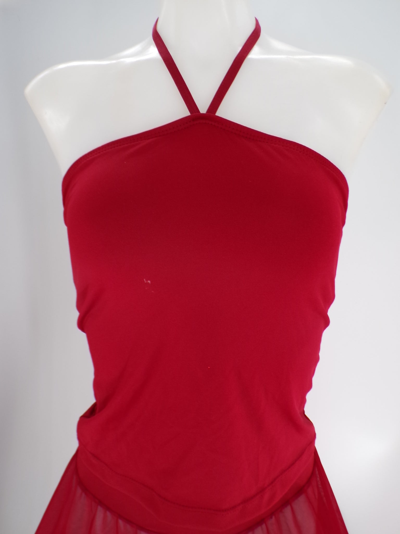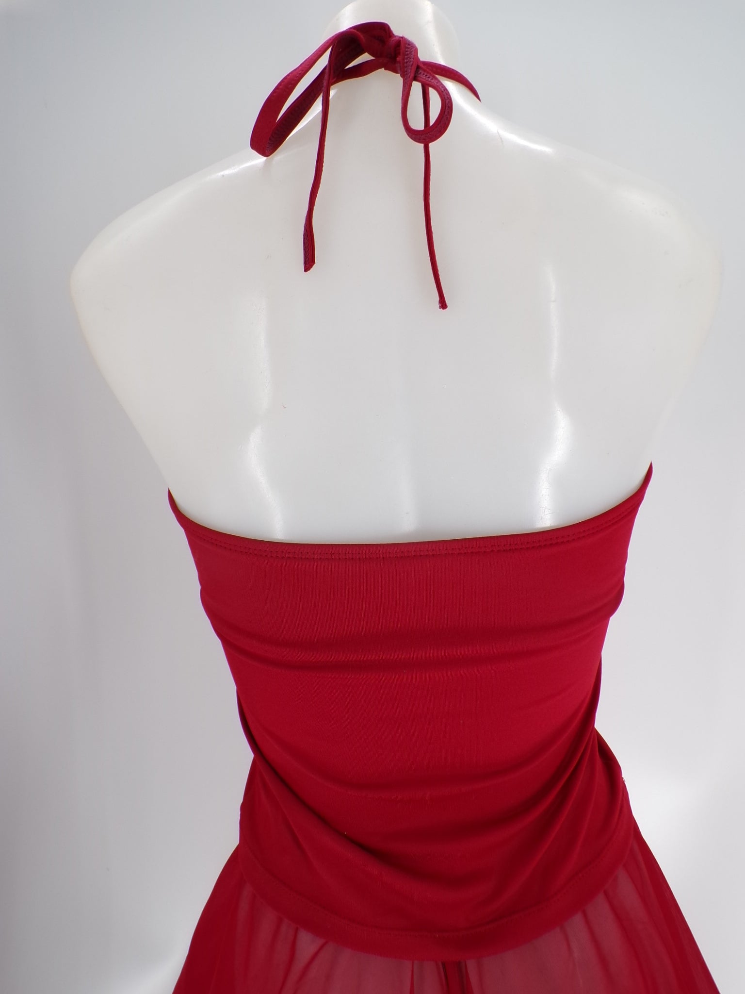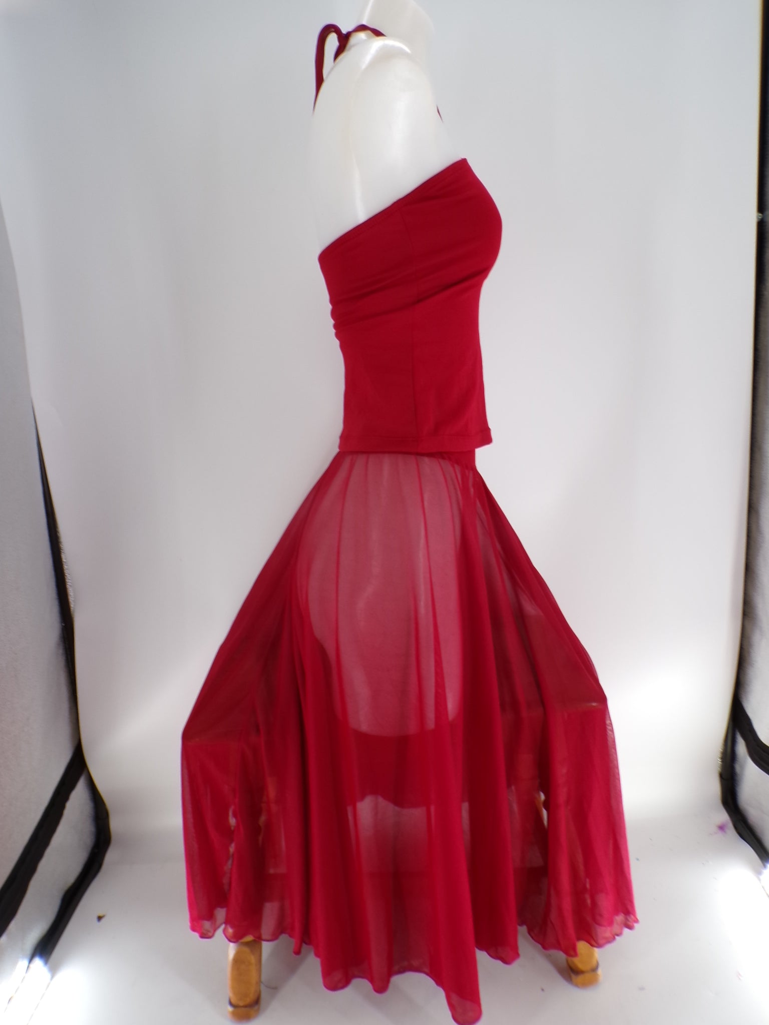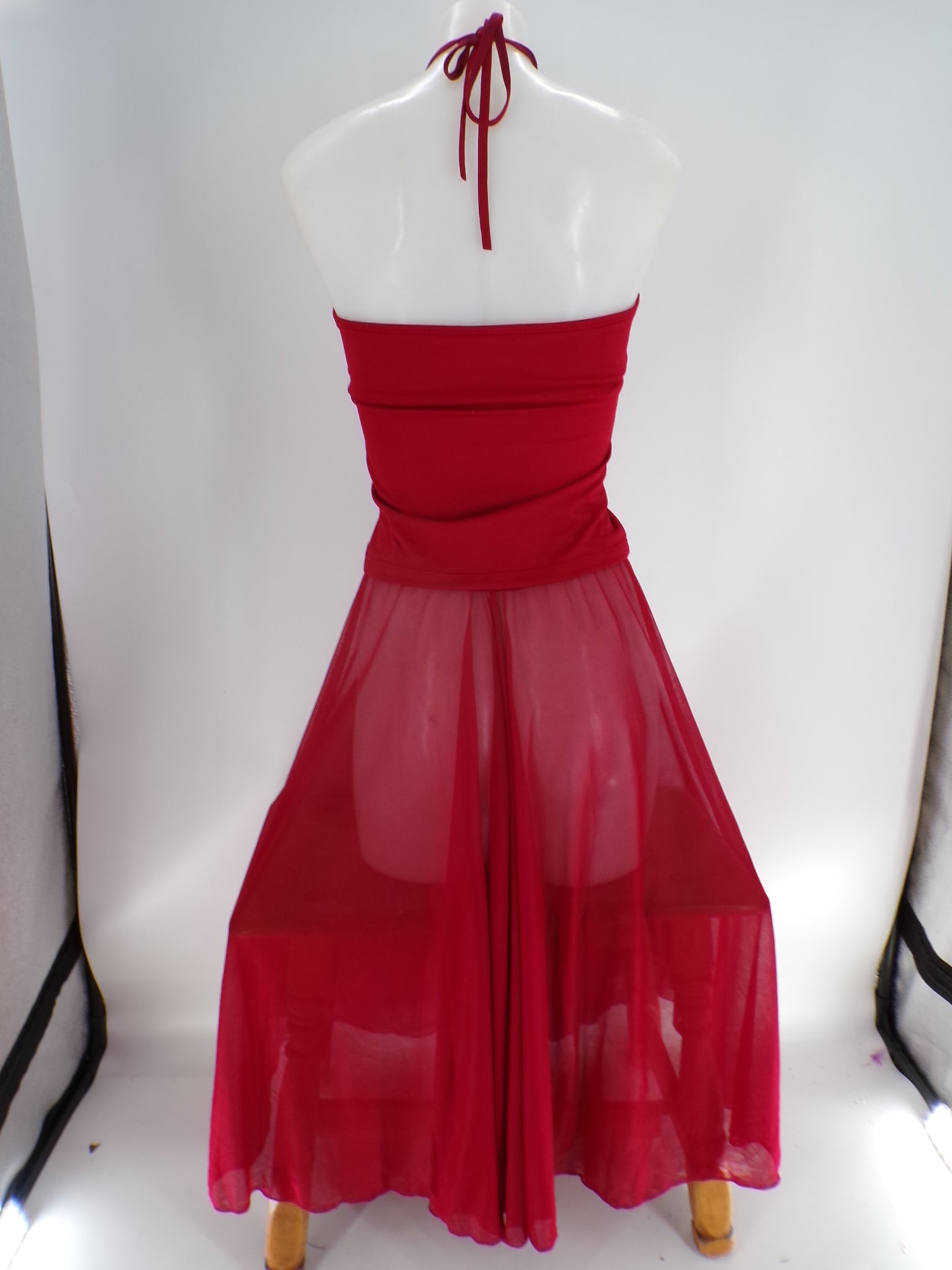 2 pc lyrical costume with cami halter top and sheer long skirt. NO BRIEFS or TRUNKS are included.