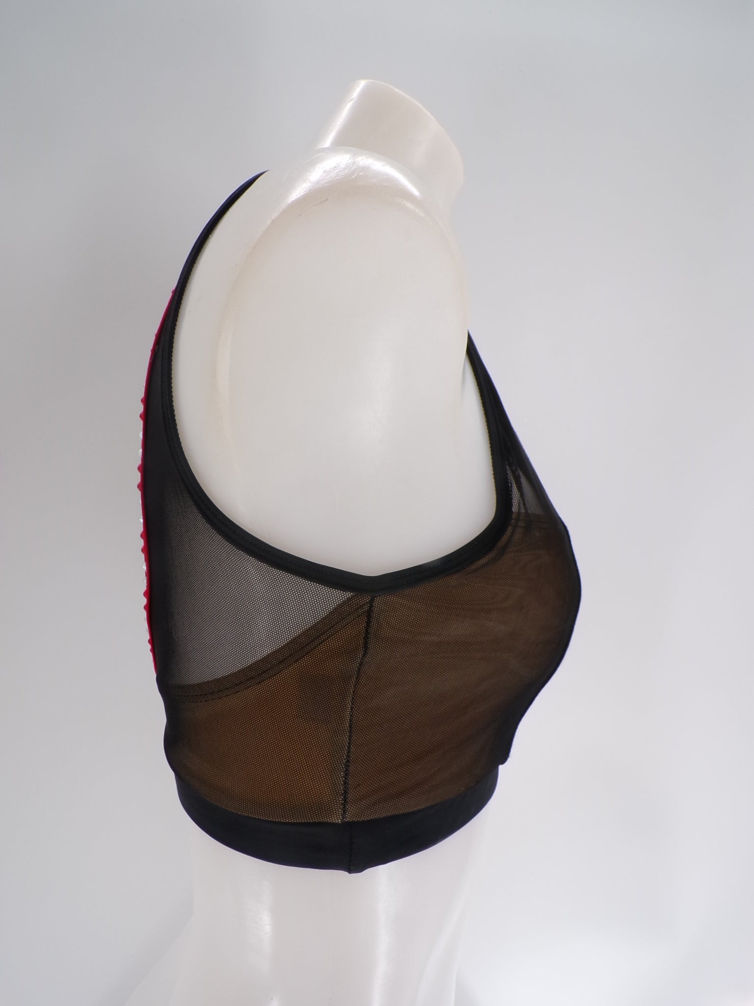 Black Mesh Crop Top with Nude lining - Center Front is opaque spandex and adorned with rhinestones