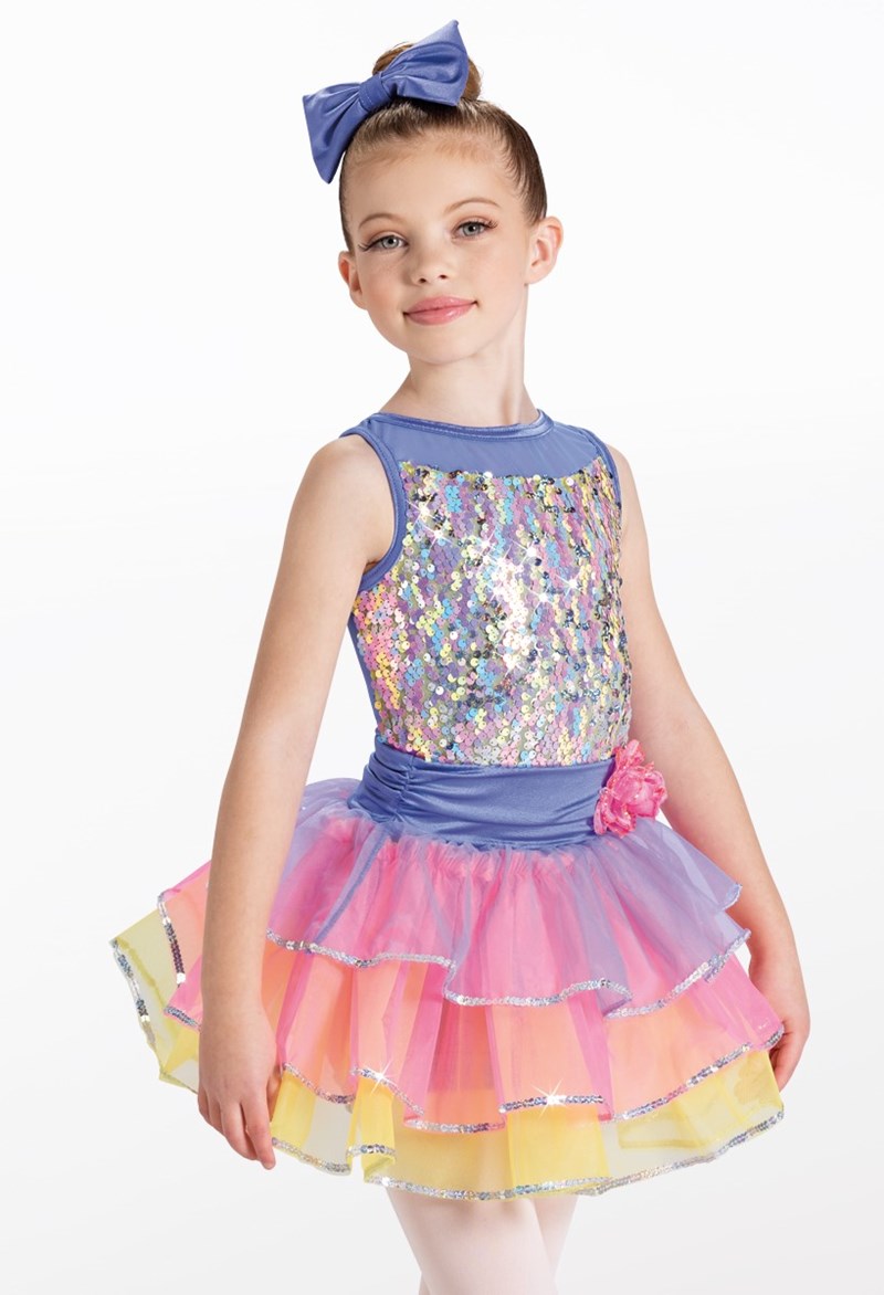Pre-Owned Costume Tutu Weissman 13423 Medium Child Multi Color Ballet Pageant Sequin Trim