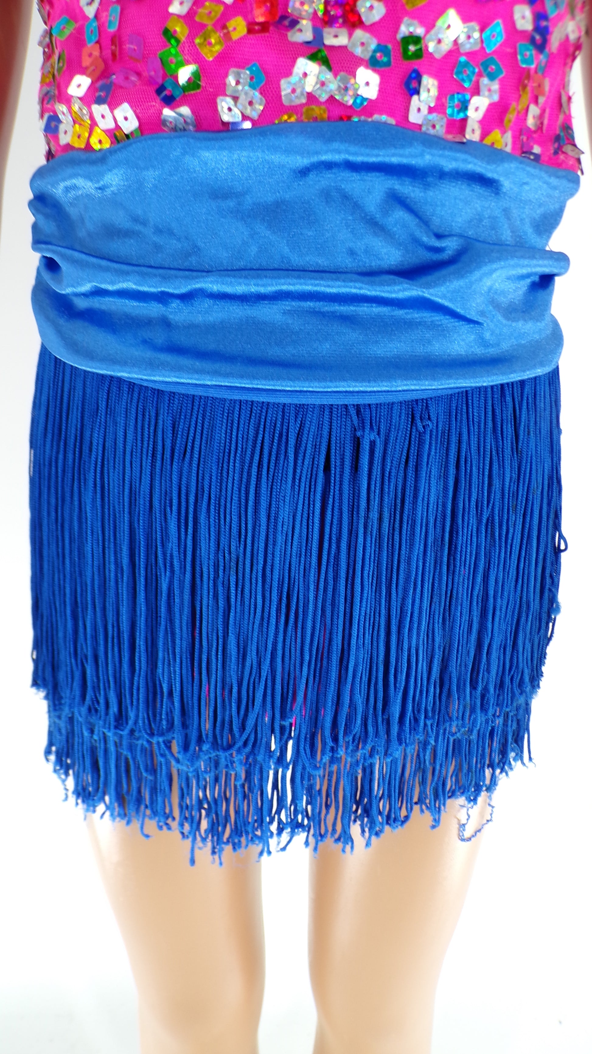 Blue and Pink Sequin Leotard with attached cumberbund and separate Back Skirt/Bustle with fishing line hem