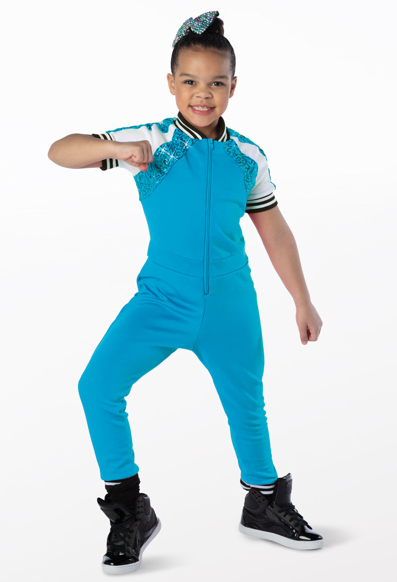 Pre-Owned Costume Weissman 13096 Medium Child Turquoise Jumpsuit Hip Hop Sequins