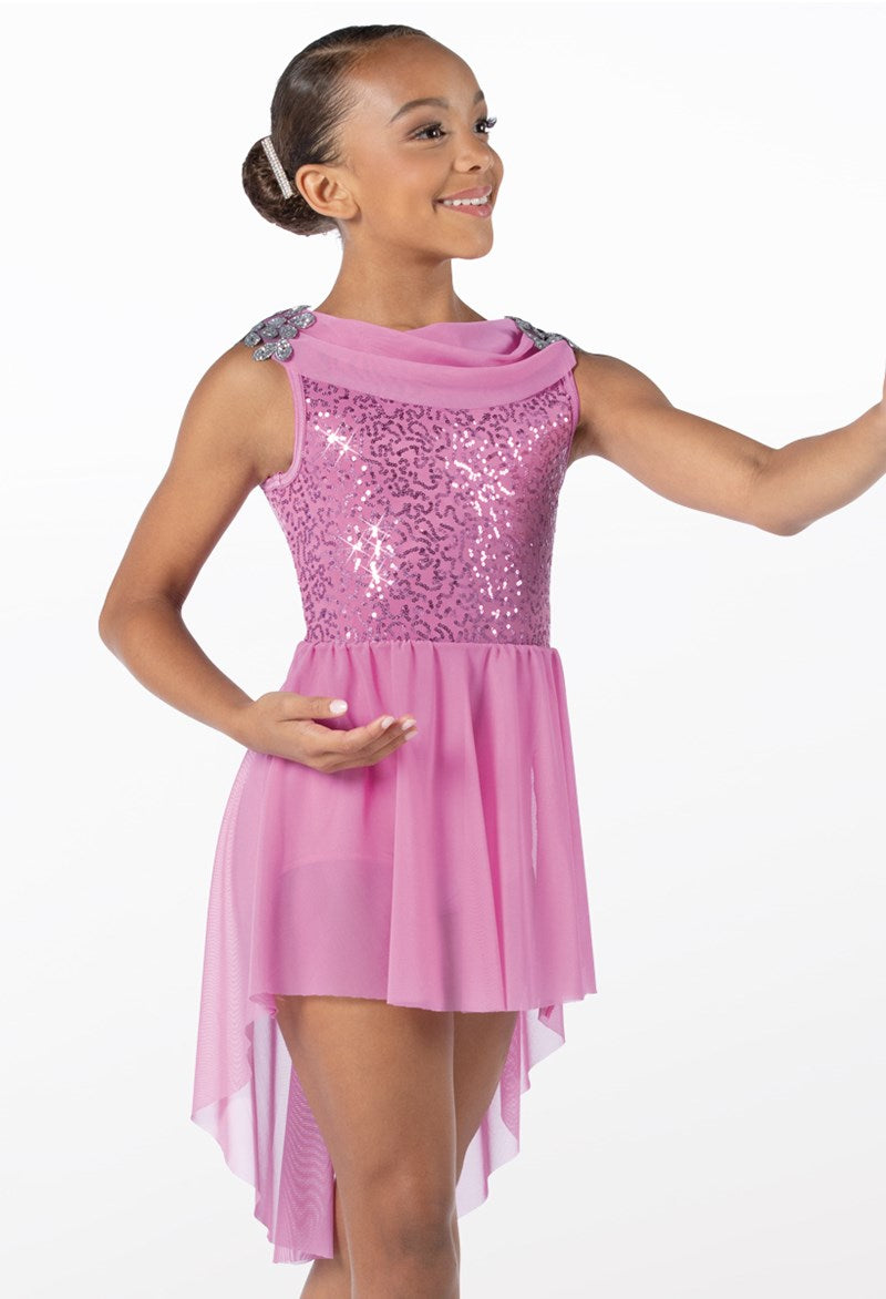 Dress has a sequin spandex bodice and power mesh cowl neck