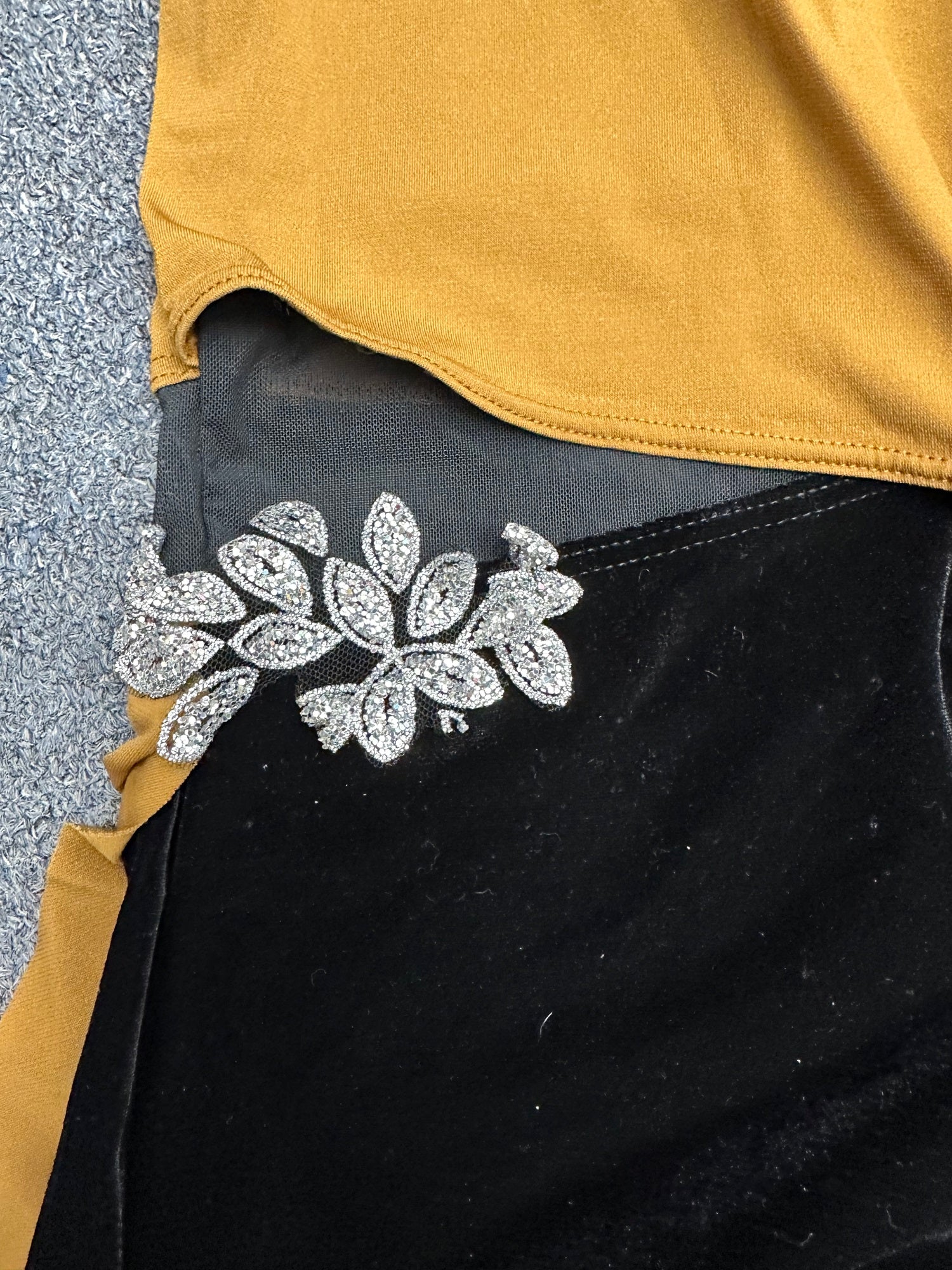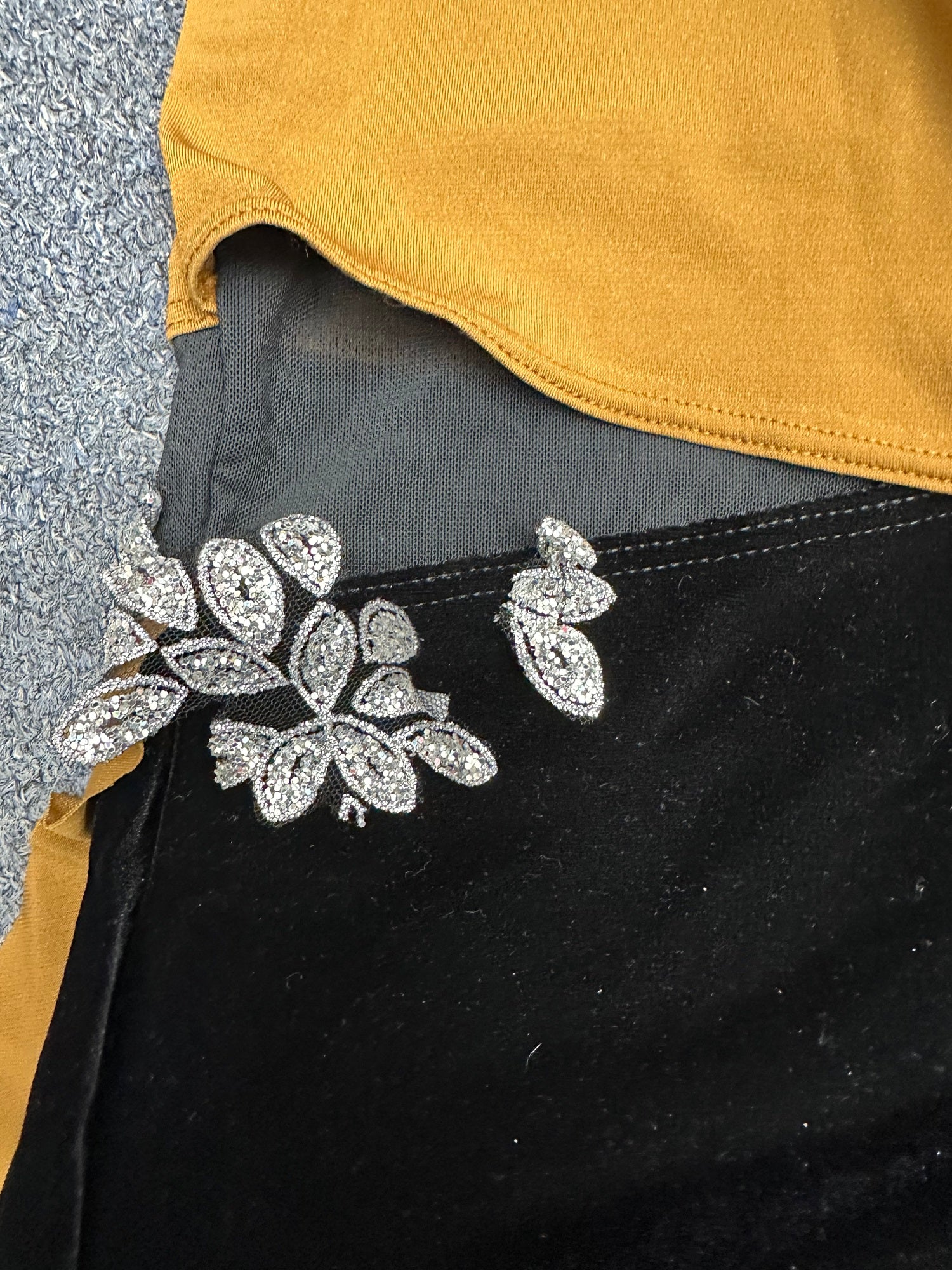 Leotard features a matte jersey bodice and stretch velvet briefs
