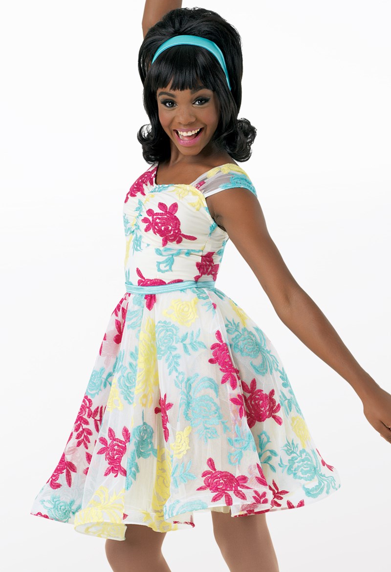 Features: Floral Capped Sleeve 60's Dress Spandex