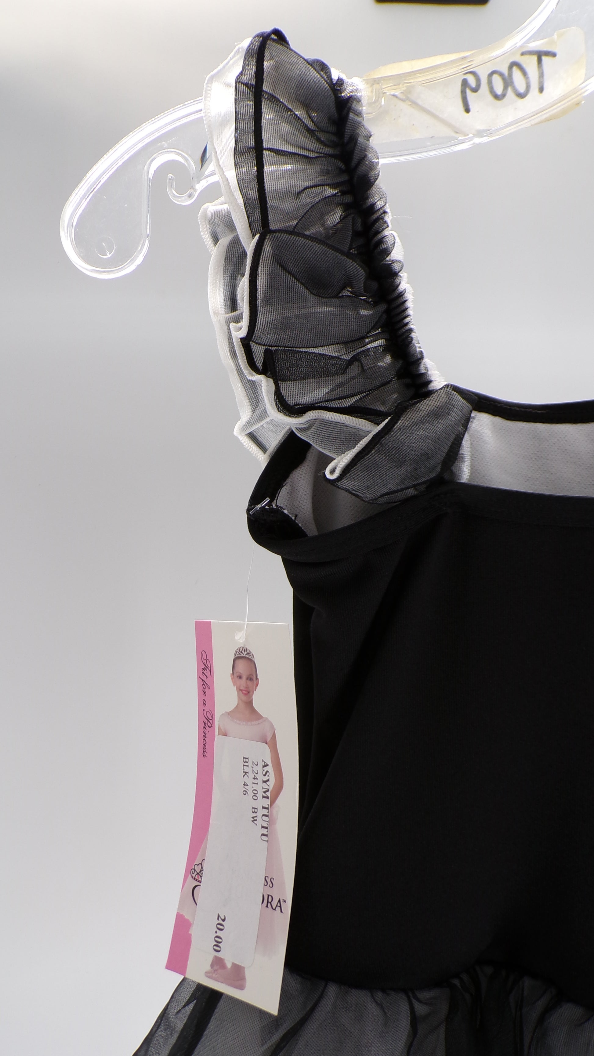 Flutter Sleeve Dress with High Low Tutu Skirt, Ruffle on the bodice and Flower on the hip