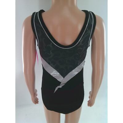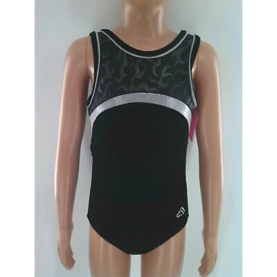 Pre-Owned Gymnastics Leotard by Alpha Factor Black Silver Medium Child