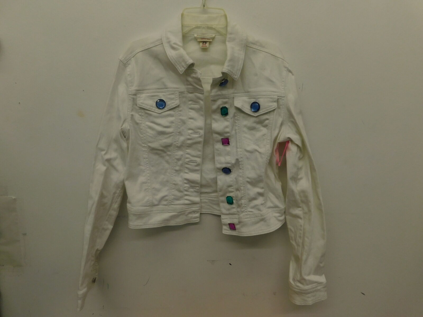 White Jean Jacket with colorful gems and pockets