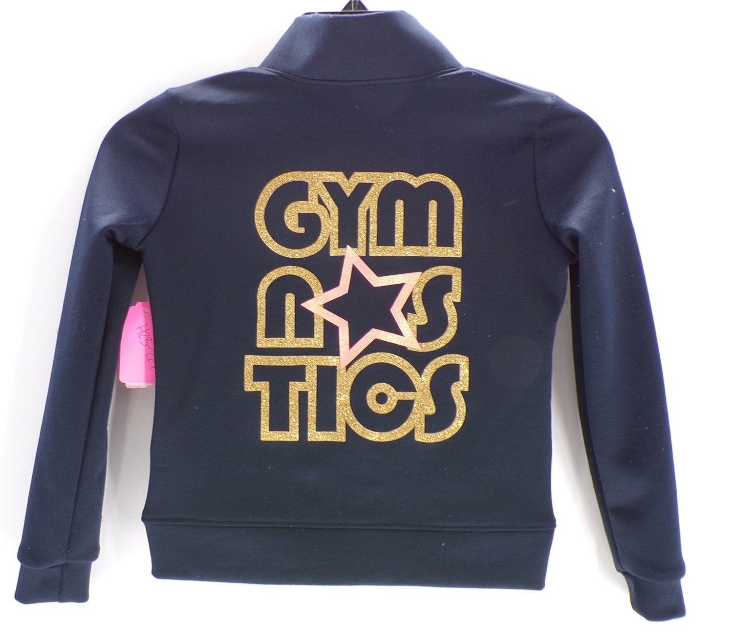Description: Jacket with white trim and collar with the words "Gymnastics" on the back