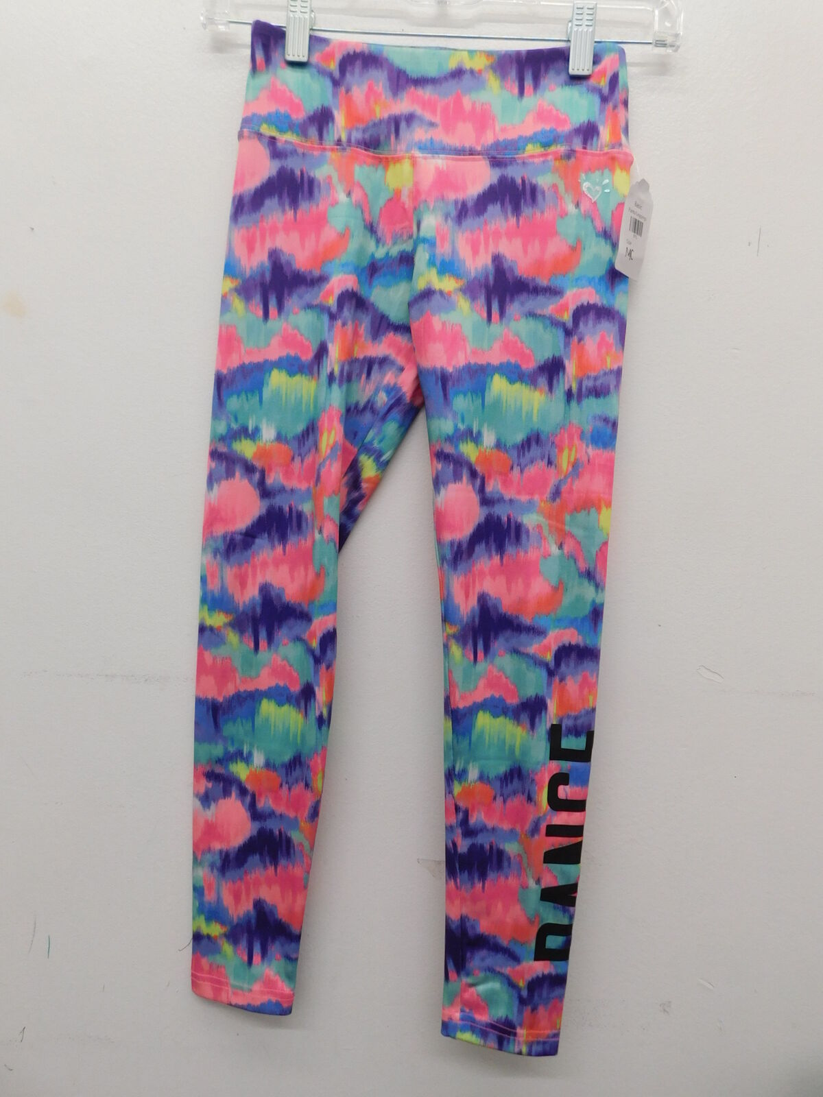 Abstract pattern with high waisted elastic waist band with the word "dance" on the leg